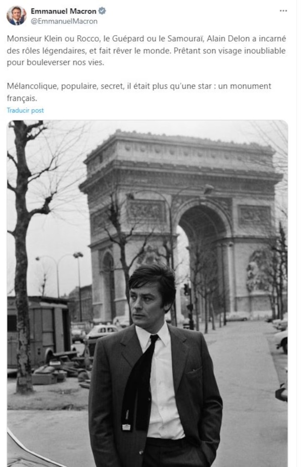 Alain Delon murió este domingo a sus 88 años. En medio de la conmoción, el presidente francés Emmanuel Macron publicó un mensaje a través de sus redes sociales y destacó la importancia del actor para la industria cinematográfica.