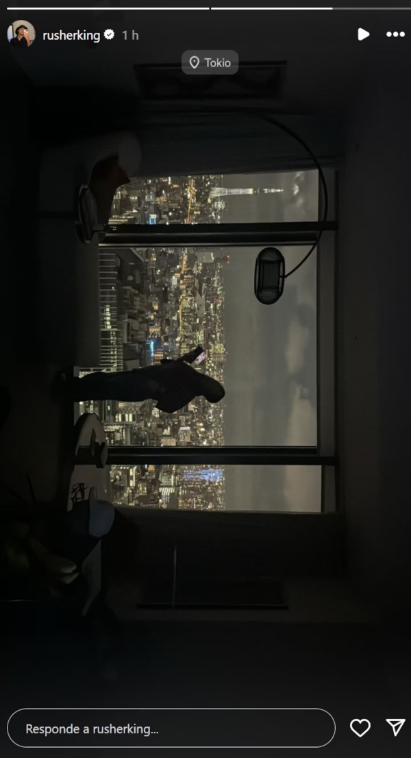 Rusherking compartió una foto íntima de Ángela Torres en su habitación en Tokio, en la que se la puede ver cerca de la ventana e iluminada por las luces de la ciudad.