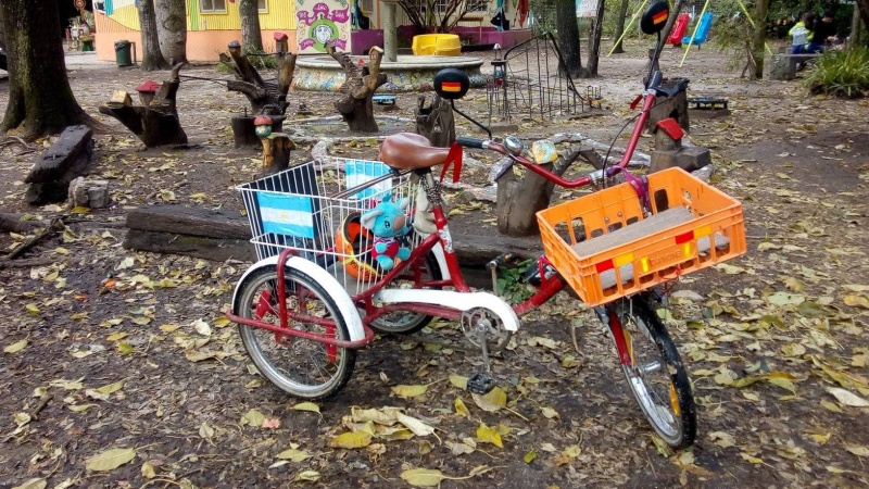Antes de "empacar" y partir, explicó: "Para eso ofrezco mi servicio de mensajería. También junto cartones y latitas para así juntar plata y comprar las cosas que me faltan para 'cartoncito', como cubiertas, cámaras y otros repuestos".
