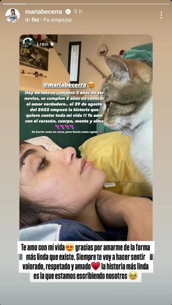 “El 29 de agosto de 2022 empezó la historia que quiero contar toda mi vida. Te amo con el corazón, cuerpo, mente y alma”, manifestó junto a una foto de María con uno de sus gatos.