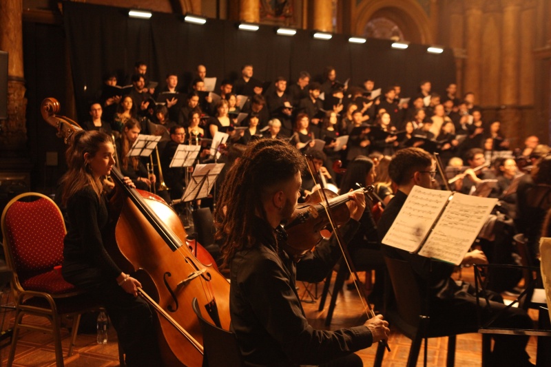 En esta oportunidad, la propuesta cultural estuvo encabezada por la orquesta sinfónica del Conservatorio Gilardo Girardi, en el marco de una serie de conciertos por sus 75 años de vida. Asimismo, participaron de la velada el Vocal de Cámara Platense y el Coro de Cámara FDA.