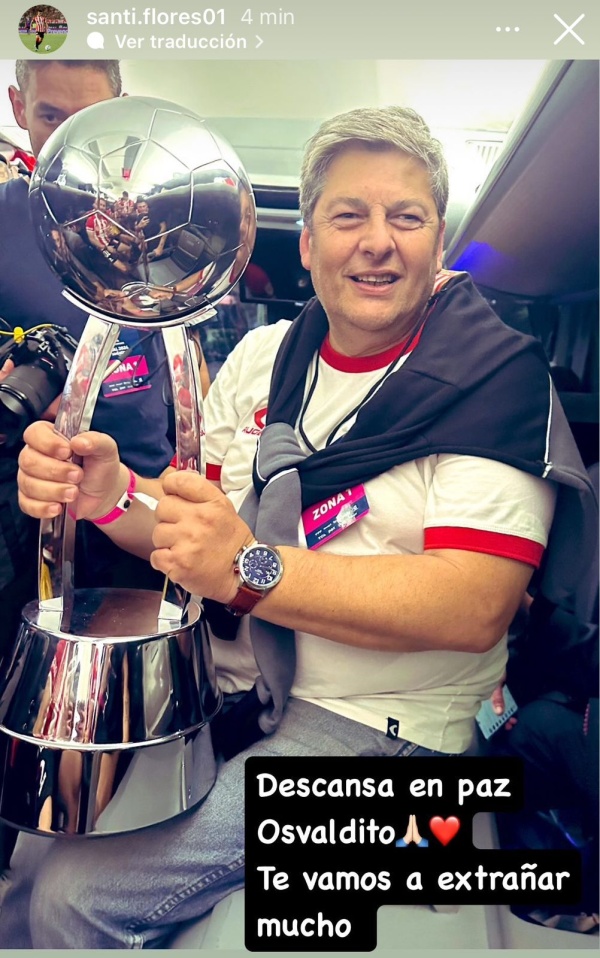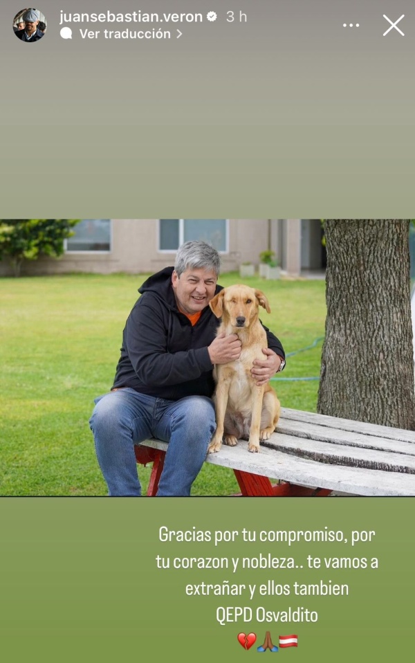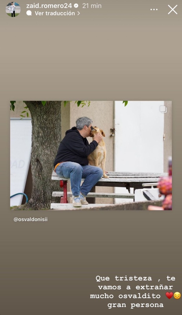 "Gracias por tu compromiso, corazón y nobleza. Te vamos a extrañar y ellos también. QEPD Osvaldito", lo recordó, por ejemplo, el presidente Juan Sebastián Verón, con quien lo unía también su gran amor por los animales. "Que en paz descanses amigo. Te vamos a extrañar mucho", por caso, lo despidió Mauro Méndez, mientras que su compañero Santiago Flores utilizó palabras similares. "Descansá en paz Osvaldito. Te vamos a extrañar mucho", expresó.