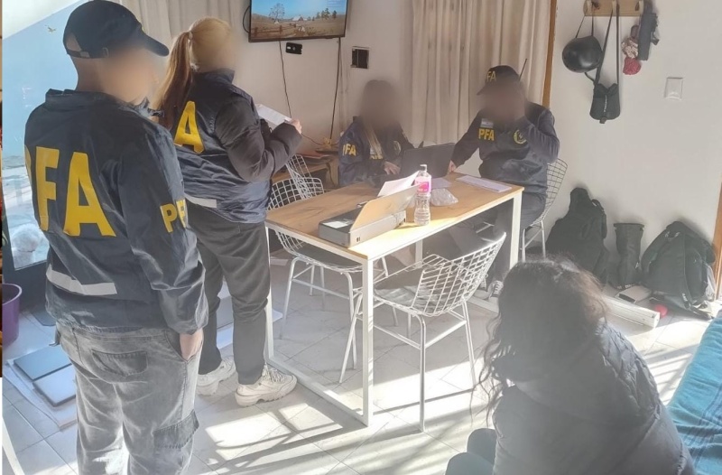 Con las pruebas obtenidas, el juez de la causa ordenó un allanamiento en el que la pareja fue detenida. Además, se secuestraron cinco notebooks, cuatro teléfonos celulares y una tarjeta SIM para su posterior análisis forense de datos.