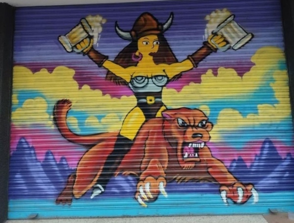 Hubo lugar también para las pinturas realizadas en diferentes puntos de la ciudad. Una de ellas estaba en diagonal 78 y esquina 3. "Se eleva el chocolate", decía tomando una mala caricatura en la televisión de Los Simpson.