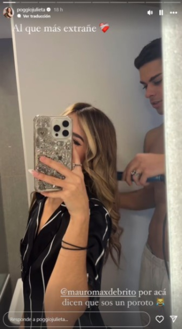 Julieta Poggio hizo eco de un clip en el que se ve a su novio Fabrizio Maida luciendo pantalones deportivos y sin remera, planchándole el pelo antes de que ella se fuera a trabajar.
