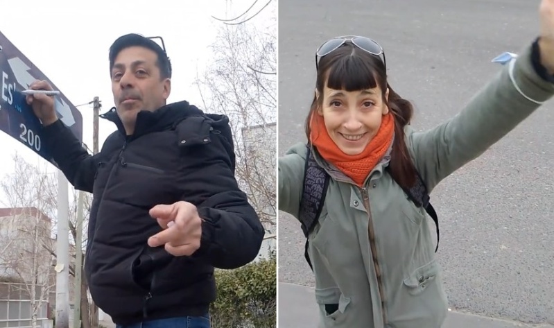 El fanático no vaciló en ir a comprar un fibrón blanco y ponerse a restaurar el cartel. Para mostrar el proceso, le tuvo que pedir a quien sea que pasara por la calle que lo grabe. Así pasó, en primer lugar, Lucas.