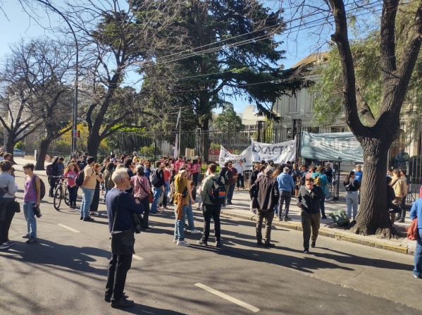 En el marco del paro por 48 horas, la Asociación de Docentes Universitarios de La Plata (ADULP) y la Asociación de Trabajadores de la Universidad Nacional de La Plata (ATULP), marcharon al Rectorado para visibilizar la lista de reclamos que los enfrenta al Gobierno nacional.