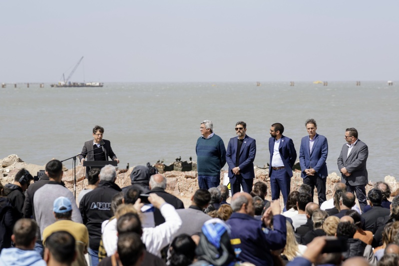 Kicillof recorrió este viernes los avances de obras de expansión del puerto de Coronel Rosales (en la zona de Bahía Blanca), junto al intendente local Rodrigo Aristimuño. Allí, con una inversión de US$ 500 millones se dará una respuesta estructural al incremento de la producción de petróleo prevista en Vaca Muerta durante los próximos años.