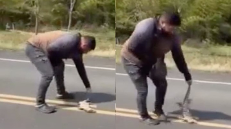 El video se viralizó rápidamente en redes sociales y causó conmoción entre los usuarios de X. En las imágenes se observa al hombre acercarse al animal y agarrarlo de la cola, pero cuando giró para retirarse de la ruta fue impactado por un auto que circulaba por el camino a gran velocidad.
