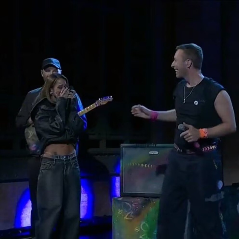 No era una sorpresa la aparición estelar que tuvo la banda británica en el mítico late night show, pero sí lo fue la aparición de la intérprete de “Buenos Aires” en el escenario durante la canción de cierre. “Una vez más, Coldplay”, pronunció el comediante Nate Bargatze y, acto seguido, la silueta de la Triple T se vislumbró junto a la de Chris Martin.