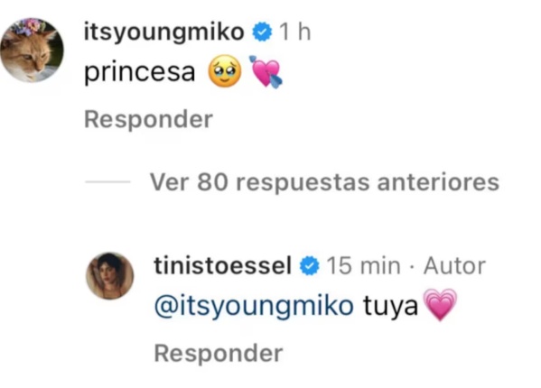 A ese coqueteo, del que emergieron versiones de todo tipo, se sumó otro que confirmaría el rumor de romance. Especialmente, por una palabra y un emoji de Tini hacia su ¿amiga?