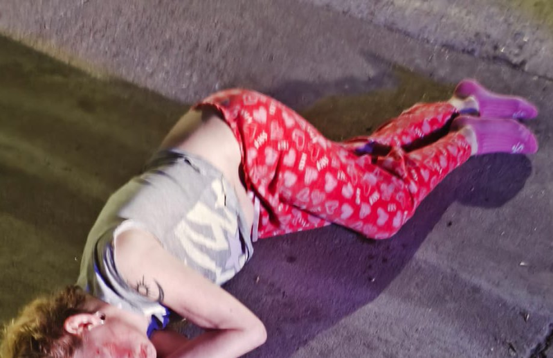 Una mujer apareció tirada en plena vía pública descalza y con algunas heridas en el rostro y sus manos.