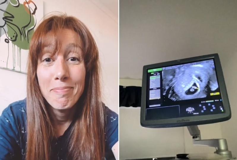 “Al de abajo lo que hacemos es medir la longitud cráneo caudal... mide siete milímetros, seis semanas y cuatro días. Ese es el embrión o bebé A. Vamos a escuchar los latidos”, explicaba la obstetra.