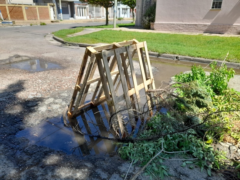 “Se pusieron estos palets para que la gente que circula por 138 no rompa sus coches. Esperemos que no se los roben y que lo arreglen”, aseguraron.