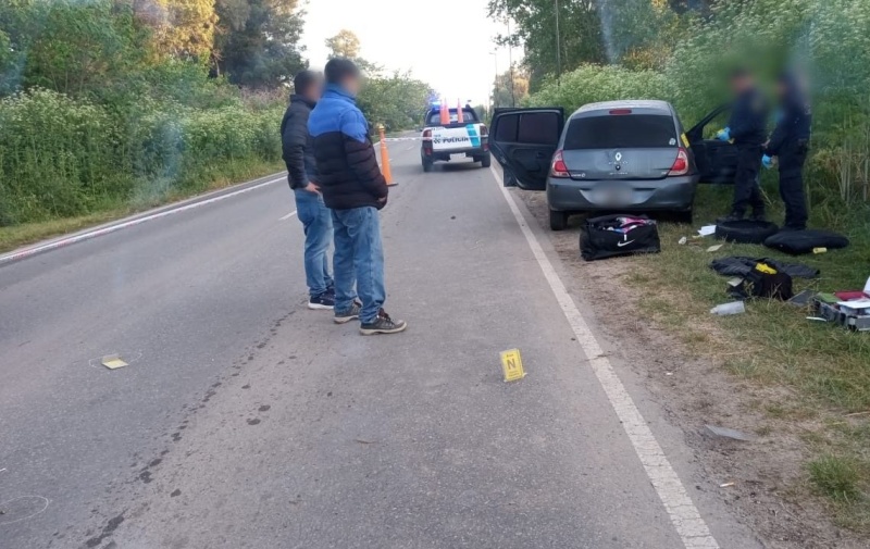 Después de varias horas de rastrillajes, los delincuentes fueron visualizados escapando a bordo de un Renault Clio, a toda velocidad. En ese momento, se inició una intensa persecución e intercambio de disparos entre la policía y los asaltantes por la Ruta 210, prolongándose por más de 10 kilómetros.