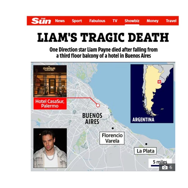 La muerte de Liam Payne, exintegrante de la famosa banda One Direction, en un hotel del barrio porteño de Palermo, conmovió al mundo y capturó la atención de los medios internacionales. Sin embargo, un detalle inesperado en la cobertura del diario británico The Sun generó revuelo en las redes sociales argentinas.
