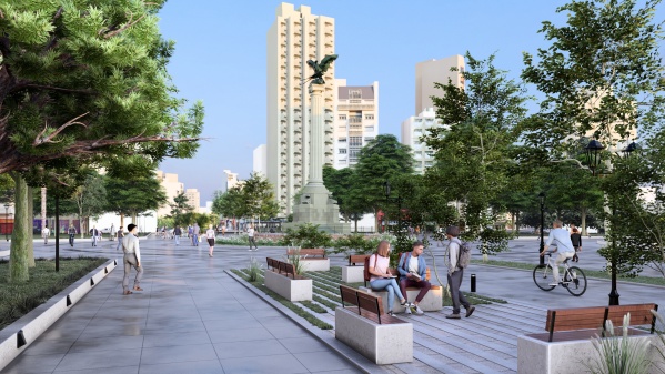 El proyecto también incluye la renovación del solado con baldosas graníticas, el acondicionamiento de los juegos infantiles, la instalación de iluminación y mobiliario urbano y la generación de un paseo peatonal con áreas de estar y esparcimiento en la zona destinada hasta ahora a estacionamiento.