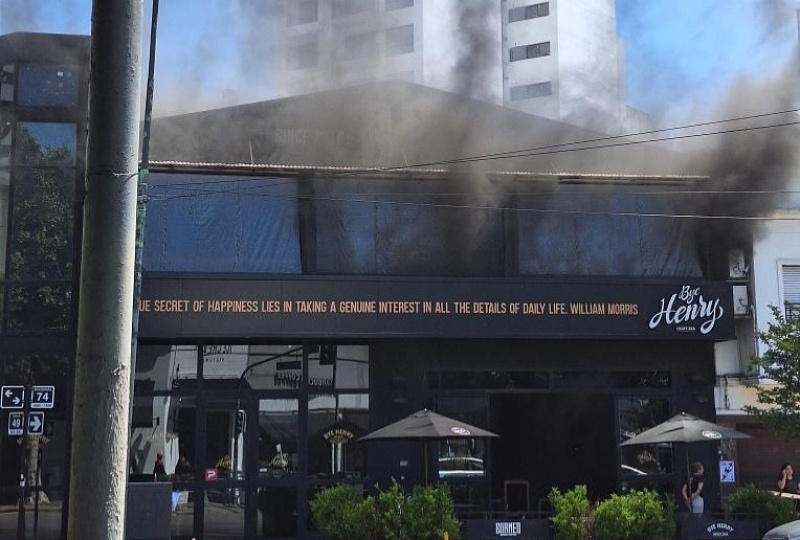Un humo negro generó preocupación en pleno centro de La Plata. El incendio ocurrió en el local de Bye Henry de Diagonal 74 y 49.
