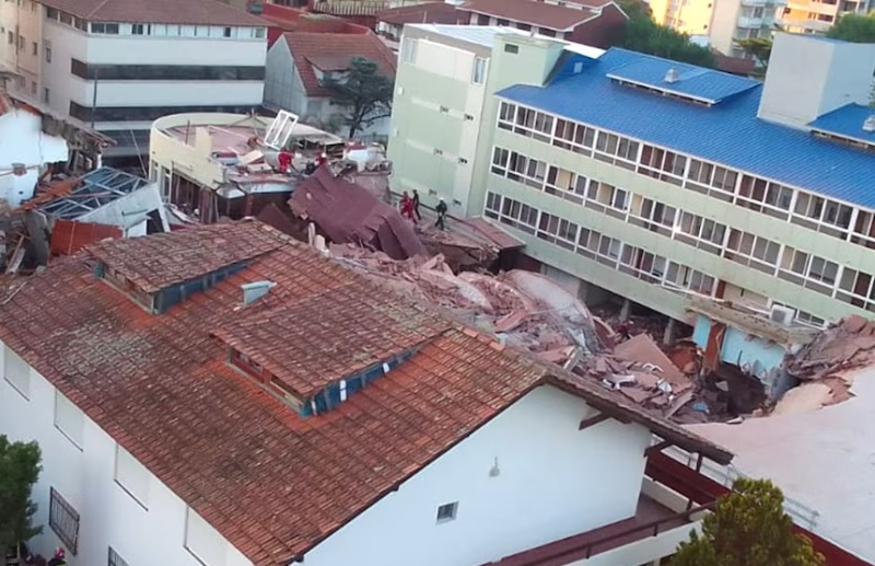 Un edificio de diez pisos ubicado en el centro de Villa Gesell se derrumbó esta madrugada, cerca de la 0:50. En el inmueble funciona el Apart Hotel Dubrovnik. Según se informó, una persona falleció y buscan al resto entre los escombros.