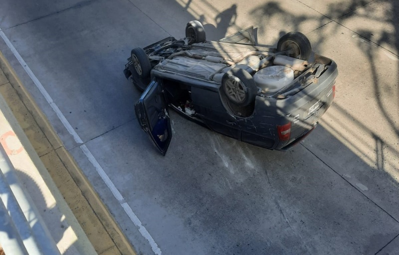 Según informaron fuentes policiales, un auto volcó alrededor de las 15.30 horas en el paso bajo nivel de calle 1 y 32.