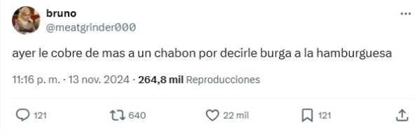 “Ayer le cobre de más a un chabón por decirle burga a la hamburguesa”, indicó @meatgrinder000.