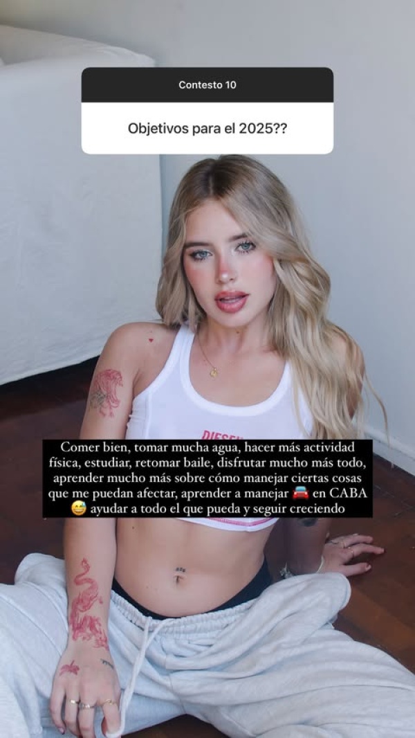 Sobre sus objetivos para el 2025 contestó: "Comer bien, tomar mucha agua, hacer más actividad física, estudiar, retomar baile, disfrutar mucho más todo, aprender mucho más cómo manejar ciertas cosas que me puedan afectar".