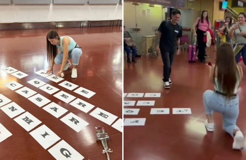Thalía se la jugó con un mensaje escrito en papeles en el piso que decía: “¿Te querés casar conmigo?”. Con una rosa y un anillo en mano. Federico la vio y su reacción de sorpresa siguió rápidamente a la emoción: Thalía se arrodilló, y él la abrazó, la besó y aceptó el anillo.