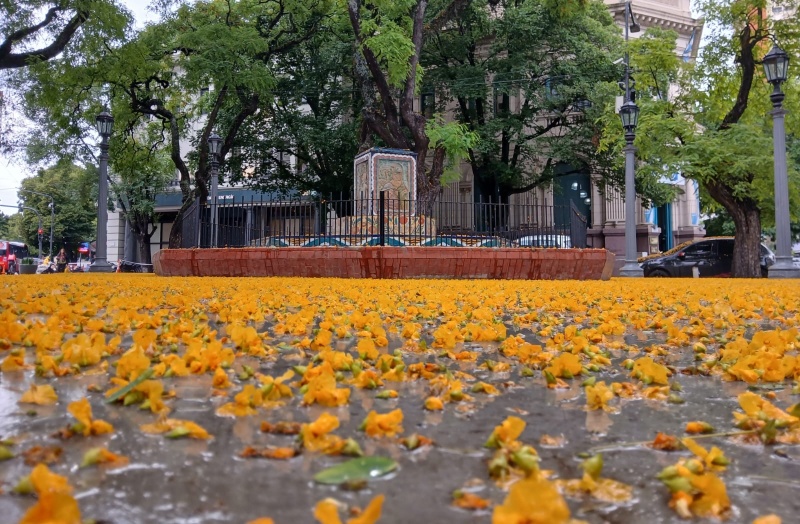 La lluvia dejó una hermosa alfombra amarilla en una plazoleta de La Plata.