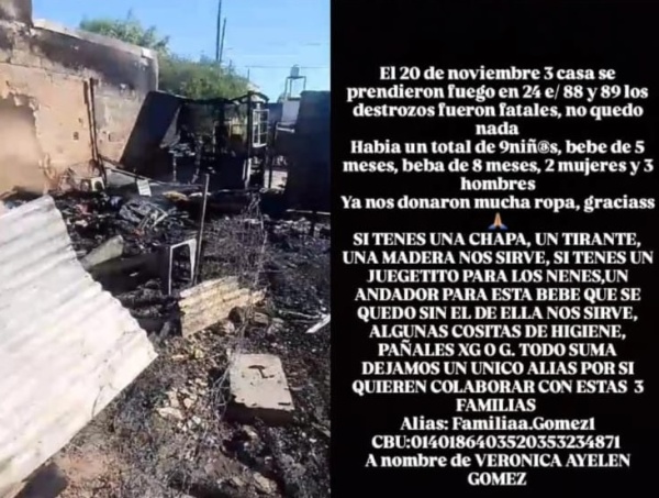 Una familia platense está atravesando un momento angustiante, y pide ayuda a la comunidad: se prendieron fuego tres casas.