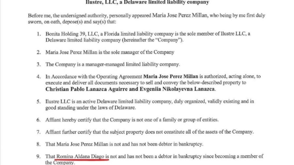 Ilustre LLC figura como propiedad de otra empresa, Bonita Holdings 39 LLC, dificultando aún más la identificación de los beneficiarios finales. No obstante, registros de 2021 vinculan a Diago con esta última firma. En 2021 aparece una pista en un documento público: el nombre de Diago figura como integrante de Bonita Holdings 39. Desde el entorno de Cristian Ritondo afirman que el informe de DiarioAr “mezcla” información, pero no dieron todavía una respuesta formal a la denuncia.