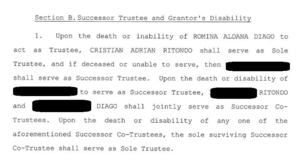 La estructura financiera se complica con la inclusión del fideicomiso Warwick Trust, creado también en 2014. Este instrumento permitió a Diago gestionar sus bienes en el extranjero, con la posibilidad de transferir la administración a Ritondo en caso de fallecimiento. El fideicomiso está gestionado directamente por Romina Diago, quien figura como "grantor" (fideicomitente, es decir, quien crea el fideicomiso para que sus bienes sean administrados por otra parte) y "trustee" (el administrador fiduciario encargado de manejar esos bienes). Este contrato es revocable en vida, lo que significa que Diago puede modificarlo en cualquier momento. Al momento de su creación, en septiembre de 2014, definió que el activo que deseaba proteger mediante esta estructura era el 100% de las acciones de Sunstar Point, aunque la sociedad fue formalmente activada semanas después. Según los registros, Ritondo no declaró estas propiedades ni las sociedades relacionadas en su patrimonio oficial.