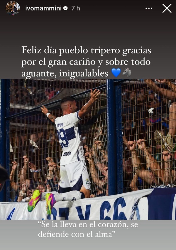 "Feliz día Pueblo Tripero, gracias por el gran cariño y sobre todo aguante. Inigualables", expresó, en tanto, Ivo Mammini, que está transitando la parte final de su recuperación de la rotura de ligamentos cruzados, y le apunta a 2025 para volver. Más sintético en cuanto a las palabras pero no por eso menos emotivo fue lo de Felipe Sánchez, el zaguero surgido de las inferiores que hoy actúa en el fútbol alemán. En la imagen que compartió se lo ve de niño, posando en un paredón muy representativo de Estancia Chica.