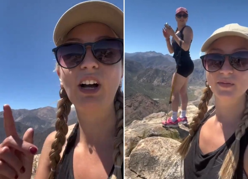 "Mi idea era estar tirada chupando y esta loca me hizo escalar hasta acá", mostró desde gran altura. "Casi dejo los pulmones cinco veces", dijo mientras mostraba a su amiga aventurera.