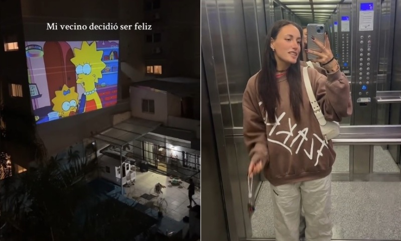 Se volvió viral en TikTok el video de una chica que grabó a su vecino mientras proyectaba una película en el edificio y terminó como invitada.