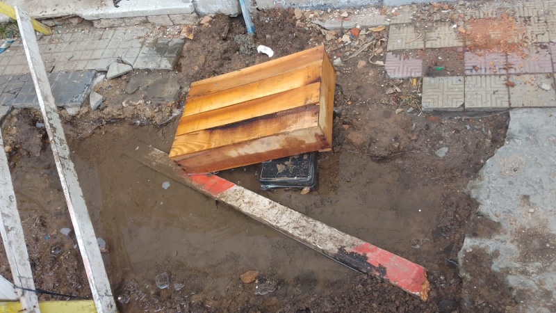 Según indicaron, la situación sucede en calle 9 y 45. Los mismos vecinos pusieron maderas para pasar.
