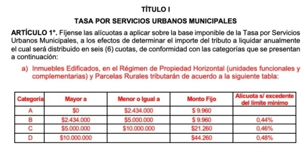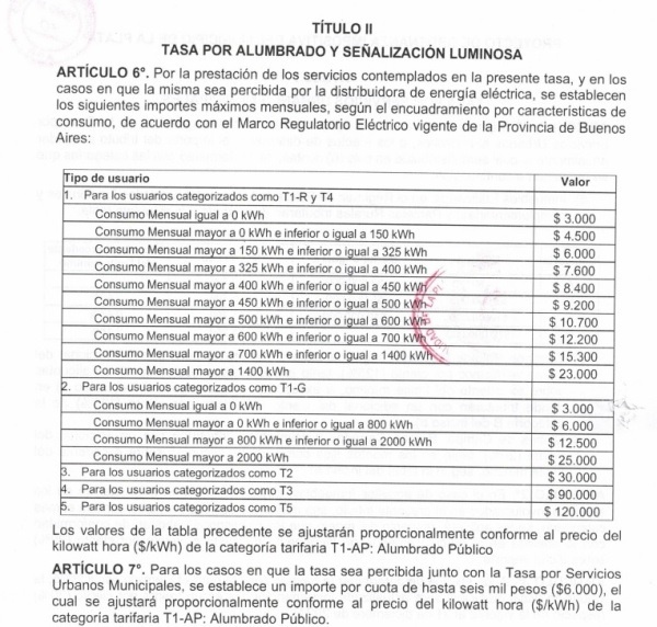 Por otro lado, también se especificó lo que pagarán los vecinos por la Tasa de Alumbrado Público.