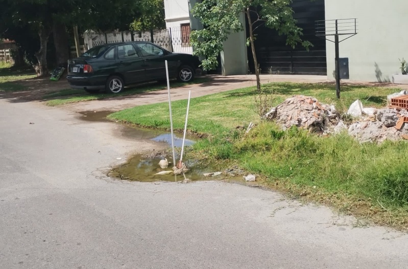 Como si fuera poco, la pérdida de agua también provocó la rotura del pavimento al costado de la calle.