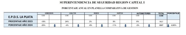 “En la planilla comparativa, y en base a los números oficiales, se advierte el eficaz accionar de la Policía de La Plata y de la coordinación de la fuerza, luego de diferentes operativos implementados el año pasado”, detalla el escrito.