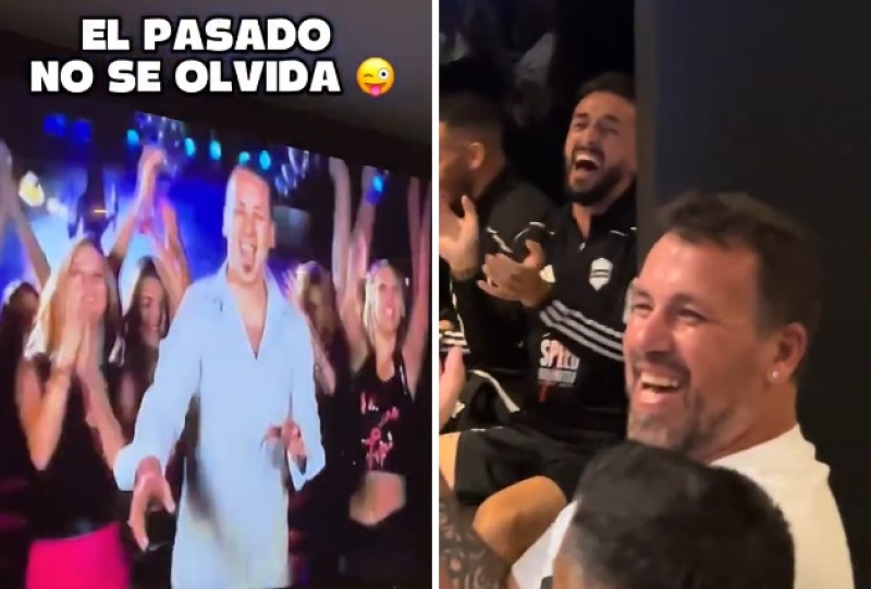 Todo ocurrió mientras el plantel y el cuerpo técnico cenaban en el hotel Stream Suites de Speed. En una pantalla pusieron un video del ogro en su época de jugador bailando con varias chicas. Un verdadero galán.