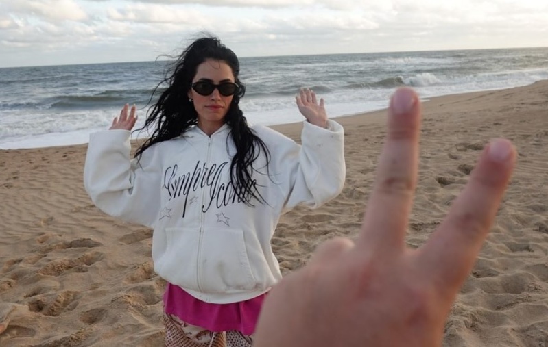 La artista subió una serie de fotos en la playa, haciendo "acrobacias" y cantando un tema con el parlante a fondo. Los usuarios interpretaron que se trata de un adelanto de su nuevo tema.