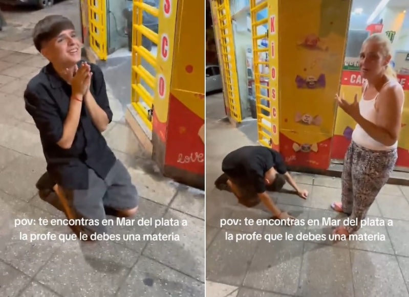 Un chico se arrodilló ante su profesora para que le apruebe una materia previa y el video fue viral en las redes sociales.