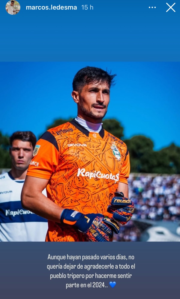 "Aunque hayan pasado varios días, no quería dejar de agradecerle a todo el pueblo Tripero por hacerme sentir parte en el 2024", comunicó al respecto el propio Ledesma, con una historia que compartió recientemente en sus redes sociales. Así, el cordobés, ahora sí le puso punto final públicamente a su paso por el "Lobo" y lo que aún es incierto es su futuro, debido a que no está del todo convencido con una de las opciones que tiene arriba de la mesa.