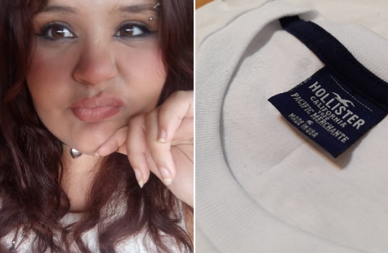 La joven aprovechó los bajos precios de la zona de Flores y compró indumentaria para el día a día: un detalle de una de las remeras causó revuelo en las redes sociales. Según se puede ver en las fotos que publicó en su cuenta, las baby tees cuentan con una etiqueta de “Hollister”, una marca estadounidense que no tiene locales en la Argentina.