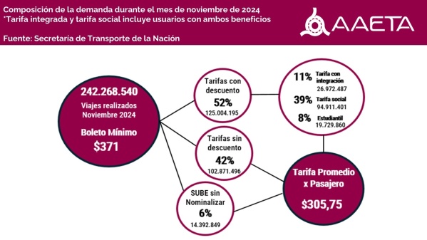Puntualmente, se trata del 52% de los viajes total. Un 11% es por tarifa con integración, un 39% por tarifa social y el 8% corresponde al boleto estudiantil.