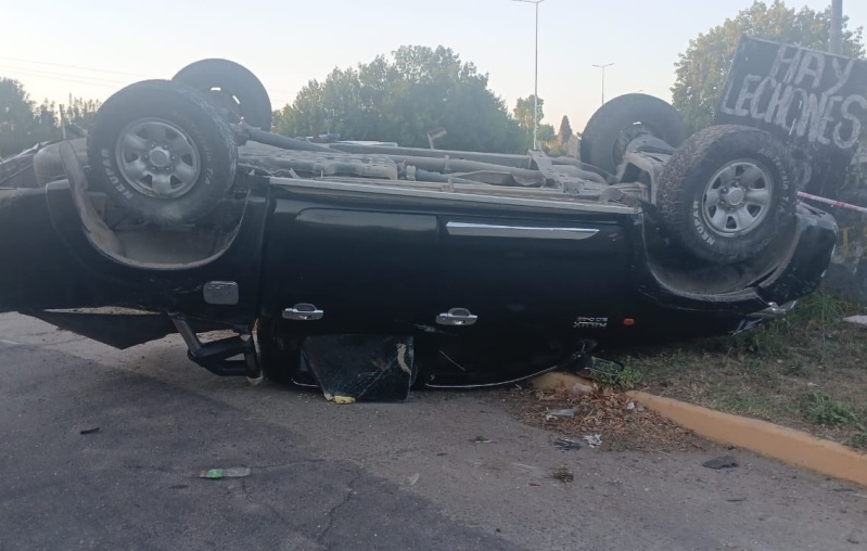 Según trascendió, en 7 y 90 la camioneta chocó con un patrullero que le cerró el paso y volcó. Uno de los ladrones pudo ser detenido y le incautaron un revólver calibre 22 largo.