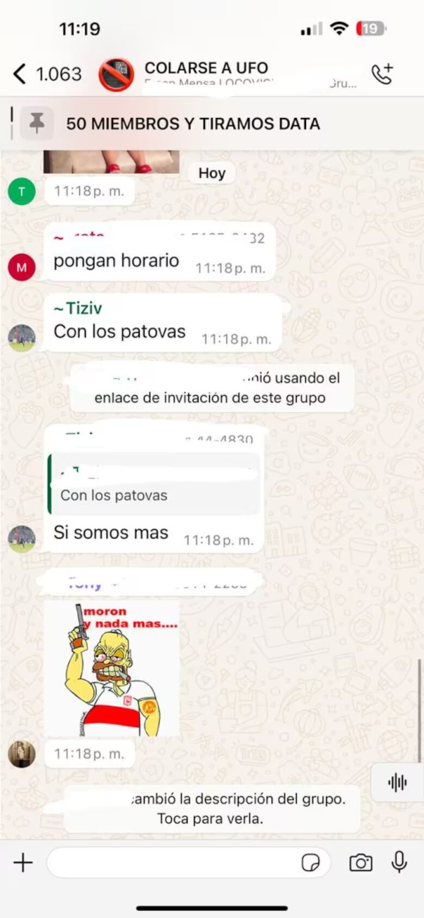 “¿Se arranca a las piñas allá al toque, o no?”, escribió un integrante. Allí recibió varias respuestas de otros miembros que buscaban precisiones. Algunos preguntaban el horario, otros si los golpes iban a ser con los “patovas”. Ante esto último, uno contestó: “Si somos más”.