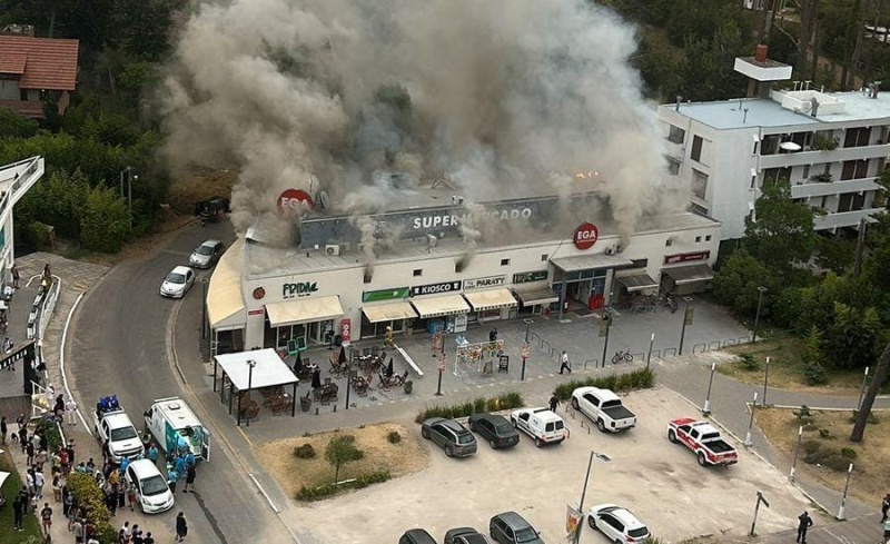 Se produjo un impresionante incendio en el supermercado Ega del centro de la ciudad balnearia de Pinamar. Al menos dos personas resultaron heridas. Una intensa columna de humo blanco se expandió desde el techo y los ventanales. Policías, bomberos y testigos se agolparon en el estacionamiento.