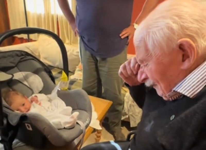 Una mujer compartió en las redes sociales el momento en el que su abuelo conoció a su hijo y la escena llegó al corazón de todos en las redes sociales.
