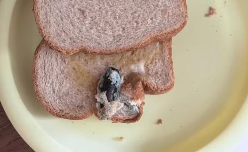 “Abrí el paquete para hacer tostadas para nuestro hijo de un año. Observé que la primera rebanada debajo de la corteza del pan estaba bastante aplastada y agarré la segunda. Cuando fui a untarle mantequilla, noté que una parte de la rebanada estaba verdosa. Miré más de cerca y me di cuenta de que allí había un proyectil”, contó la mujer.