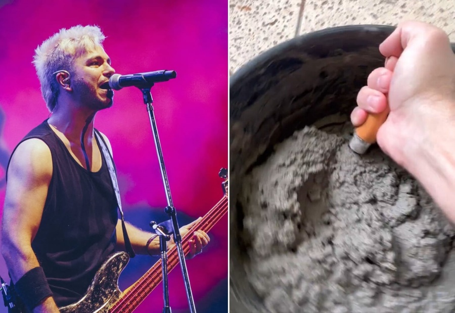 El vocalista, bajista y corista de Airbag subió un video corto a la red social X (antes Twitter), donde se observa cómo con una cuchara mezcla el cemento dentro de un balde. No era mucho material, pero dio pie a un sentido mensaje: "Nunca está mal recordar de donde uno viene".